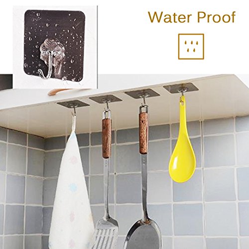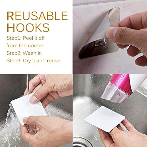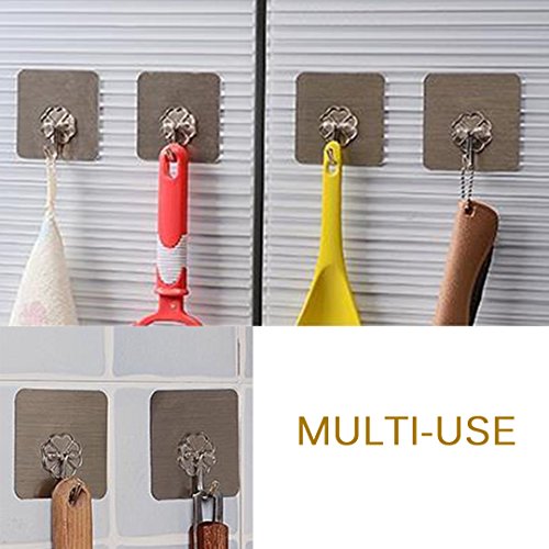 - ▶ EASY TO USE AND REUSABLE: Just peel off the film, then put the hook on smooth surface like wood, tile, ceramic, metal surface and more. (Please pay attention that there are limits on painted walls, it may damage the wall because of the strong adhesion.) REMOVE AND REUSABLE: Easy to clean and reposition without surface damage. It can be repeated using after water cleaning and drying with hair dryer or air-dry.