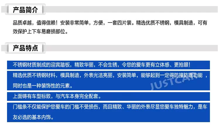 Made of 1 stainless steel material, welcome pedal, delicate, not rust, makethe car more stereoscopic sense, your more eye-catching!