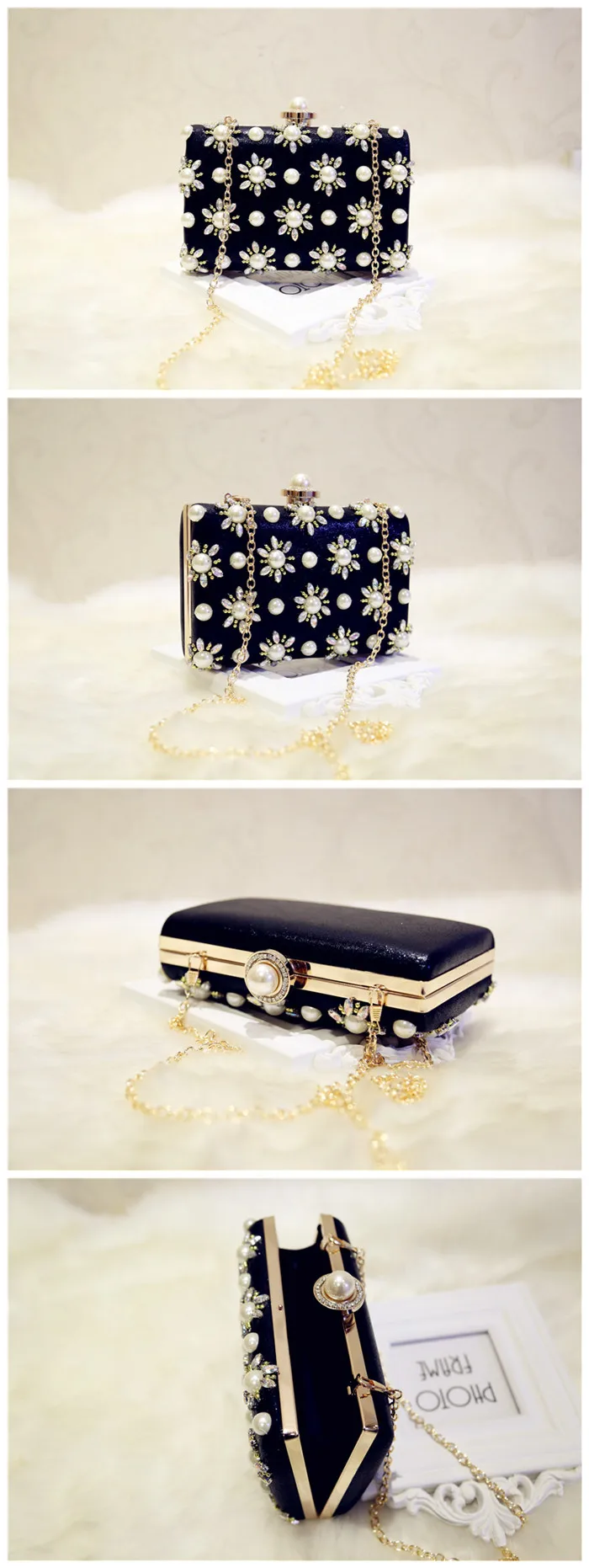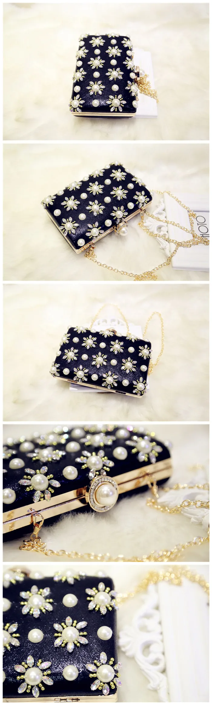 Features 2:Luxury Pearl Clutch bags Women Purse Diamond Chain white Evening