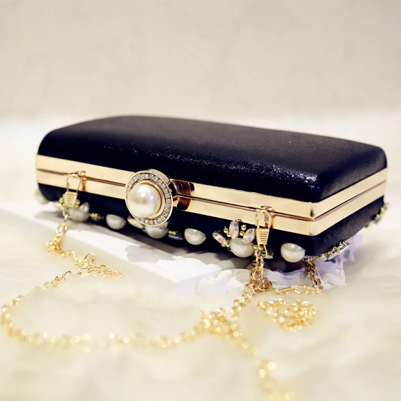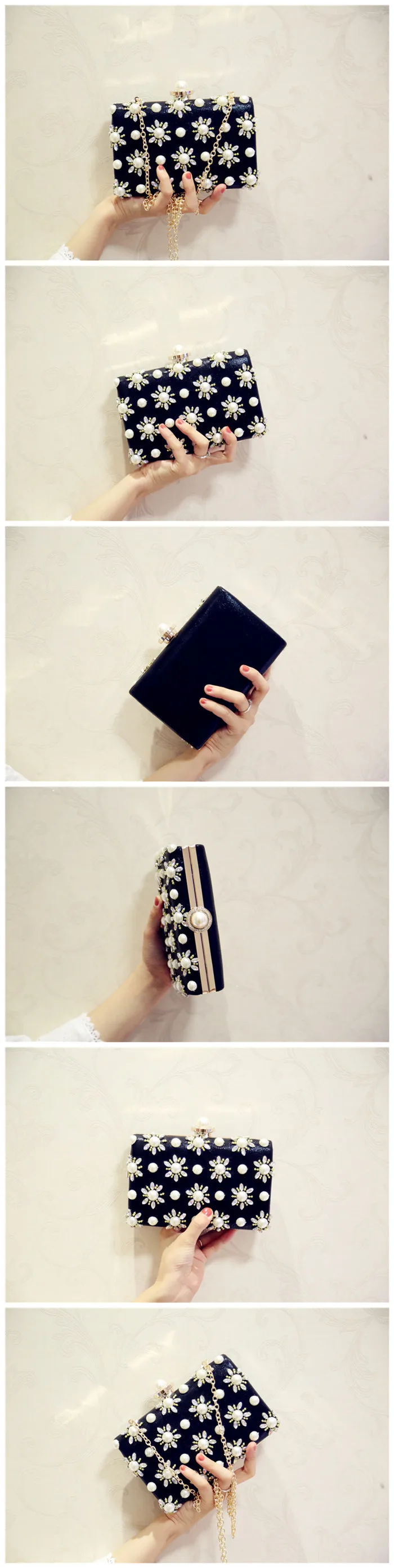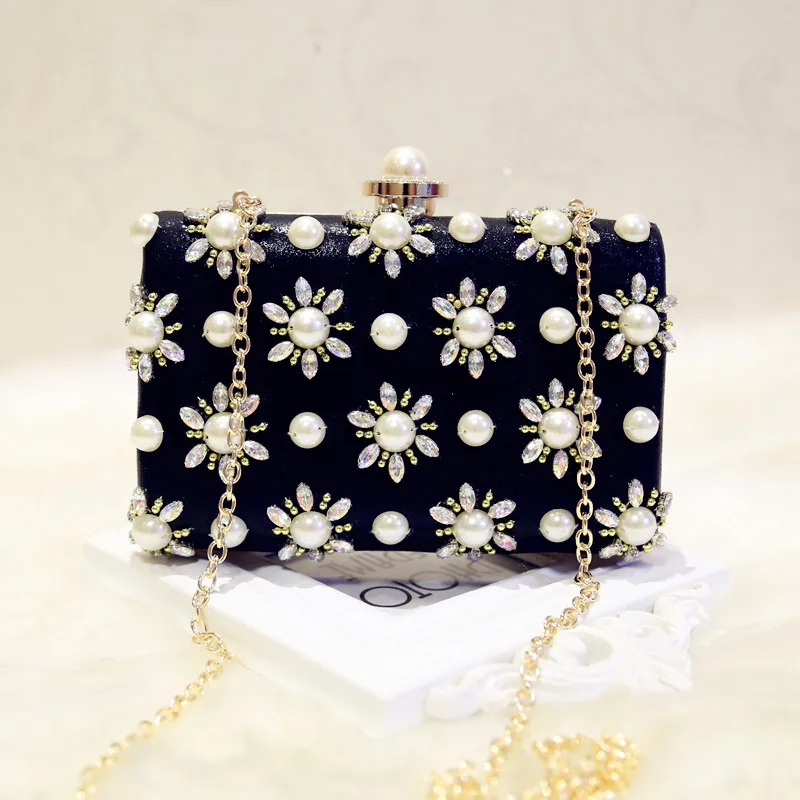Features 1:2017 Women Evening Bags Pearl Beaded Party Shoulder Bag Bridal Wedding