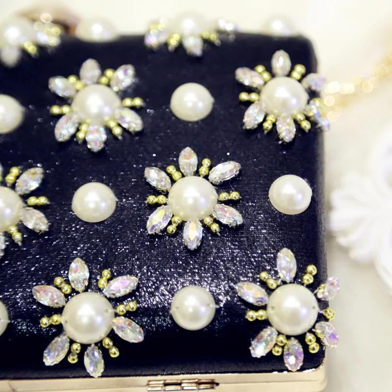 Features 3:Luxury Handmade Flower Evening Bag Pearl Beaded Clutch Purse Diamonds