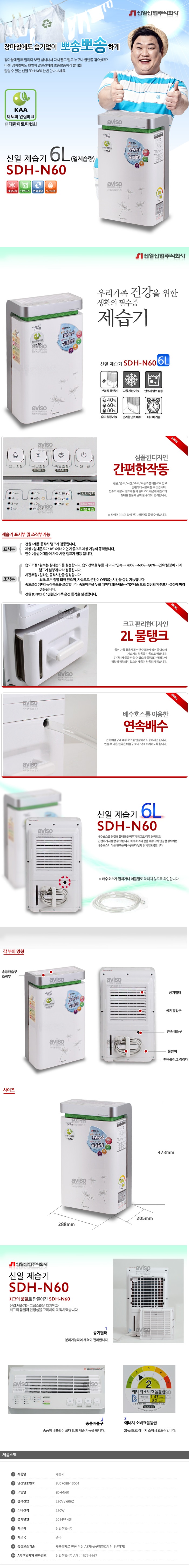 - 품명 및 모델명신일 제습기 6리터 SDH-N60