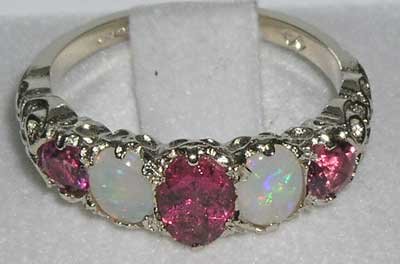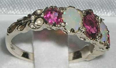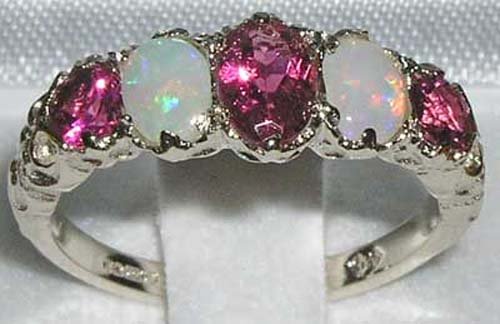 -. Feature : Made in England / Natural Pink Tourmaline & Opal / Real Solid Sterling Silver / Sizes 4 to 12 Available including quarter and half sizes / Supplied in a FREE Luxury Ring Box