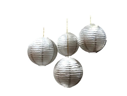 Chinese Paper Lanterns, Silver, 12” Inch Diameter - By Playscene (Pack of 6) (SILVER)