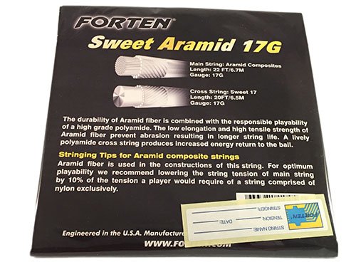 Studio : ACKS Global, Inc. Publisher : ACKS Global, Inc. Binding : Sports Product Description The durability of Aramid is combined with the responsive playability of a high grade polyamide. The low elongation and high tensile strength of Aramid fiber prevent abrasion resulting in longer string life. Our sweet 17 cross string produces increased return energy on the ball. Stringing tips for Aramid composite strings: Aramid fiber is used in the constructions of this string. For optimum playability we recommend lowering the string tension of main string by 10% of the tension a player would require of a string comprised of nylon exclusively. 0