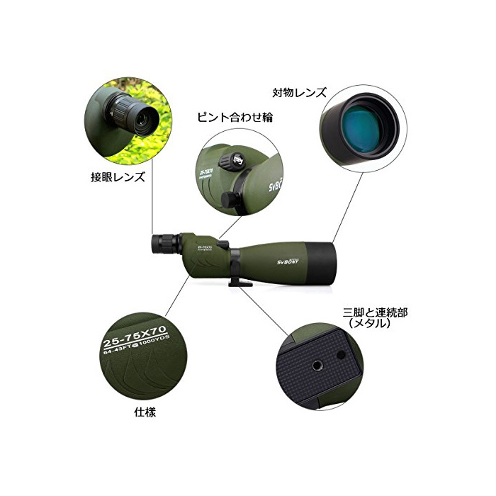 원본상품명: SVBONY フィルドスコプ 望遠鏡 眼鏡 高倍率 防水 天測 野鳥察 スマホアダプタ付き 日本語マニュアル付き