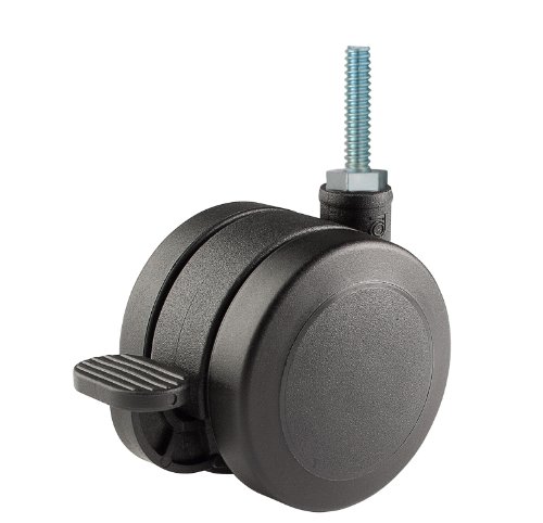 Twin Wheel Caster Solutions TWUN-60U-T03-BK-B 2.36" Diameter Nylon Wheel Unhooded Brake Caster, 1/4-20" Diameter x 1" Length Threaded Stem, 132 lb Capacity Range