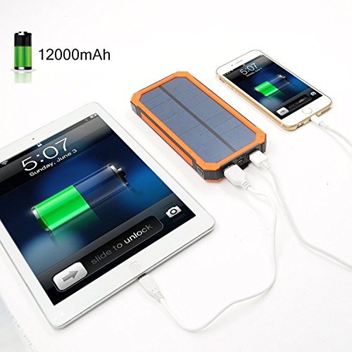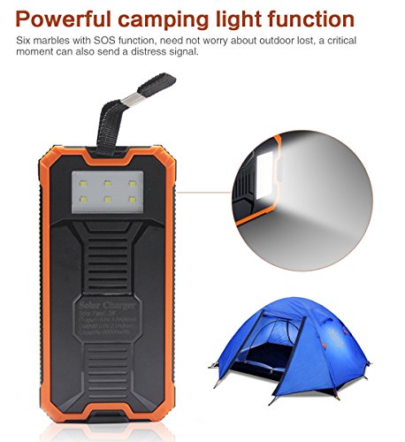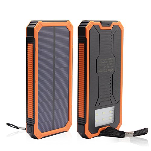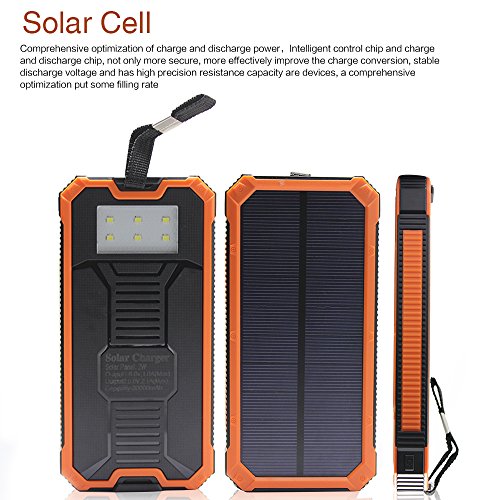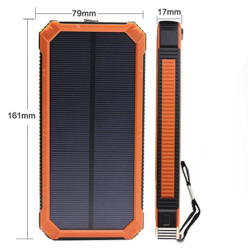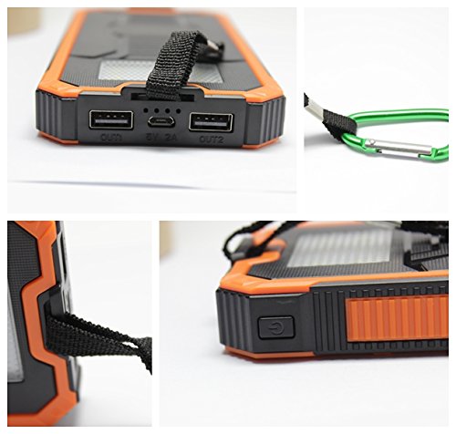 - Title : 12000mAh Solar Charger, Portable Solar Powered Phone Charger Dual USB Solar External Battery Pack Power Bank for Cellphones With Solar LED Lights For Emergency or As A Camping Light (Orange)