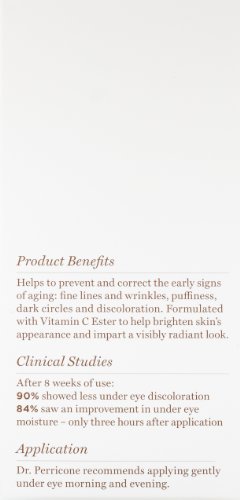 -. Binding : Health and Beauty -. Brand : Perricone MD -. Color : no color -. Department : Beauty -. EAN : 5055375865872 -. Feature : Includes Alpha Lipic Acid, the ultimate antioxidant protects the cell, which helps to diminish fine lines, wrinkles and discoloration, refine skin texture, and reduce pore size, puffiness, imperfections and uneven skin tone / Includes DMAE, an anti-inflammatory and antioxidant, which provides firming and toning benefits, enhances facial contours, and enhances the strength of other antioxidant therapies / Includes Vitamin C Ester, a powerful antioxidant that improves firmness and elasticity, which helps to diminish the appearance of fine lines, wrinkles and discoloration, and to impart a radiant, smooth and luminous appearance / Bottle size: 15mL / .5 fl oz / After 4 weeks of use: 90% showed less discoloration under eyes; 84% reported improvement in under eye moisture (only 3 hours after application) -. IsAdultProduct : 0 -. Label : Perricone M.D. -. LegalDisclaimer : This product cannot be shipped to the following countries: Australia, France, Italy, Korea, Democratic People's Rep., Spain, United Kingdom -. Manufacturer : Perricone M.D. -. Model : 5120 -. MPN : PMD-006 -. NumberOfItems : 1 -. PackageQuantity : 1 -. PartNumber : PMD-006 -. ProductGroup : Beauty -. ProductTypeName : BEAUTY -. Publisher : Perricone M.D. -. ReleaseDate : 2010-03-23 -. Size : 0.5 oz -. Studio : Perricone M.D. -. Title : Perricone MD Advanced Eye Area Therapy, 0.5 fl. oz. -. UPC : 146472672427
