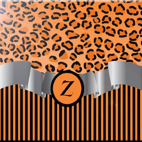 Rikki Knight RK-6intilec-2463 6" X 6" Letter "Z" Orange Leopard Print Stripes Monogram Design Ceramic Art Tile