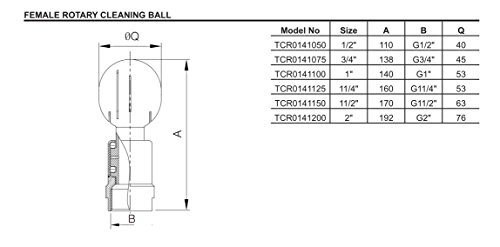 Stainless Steel 304 Rotary Tank Spray Cleaning Ball 1/2" Female Connection with ball dia 40mm and cleaning radius 0.5-1.5m
