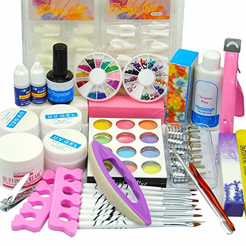 Studio : Warm Girl Publisher : Warm Girl Binding : Misc. Product Description Package Contents: 1 x Cuticle oil (Random Taste) 1 x Cutter 1 x Cleanser plus 1 x UV gel (pink) 1/2 OZ 1 x UV gel (white) 1/2 OZ 1 x UV gel (clear) 1/2 OZ 1 x Buffing Cream 8 x Painting brush pen 1 x Cuticle fork 1 x Small Cuticle pusher double-sides 1 x 12 colors of rhinestones (random Color) 1 x 12 colors of pearl (random Color) 2 x nail separator 2 x 3g Nail glue 5 x Resusable Form (random Color) 1x 4 way buffer (random Color) 1 x White buffer Block 1 x Pink buffer Block 1 x Sanding File 1 x 100pcs nail tips - natural 1 x 100pcs nail tips -white 1 x Purple Buffer 1 x Side Clipper 1 x UV top coat 1x 12 color glitter powder (Random Color)