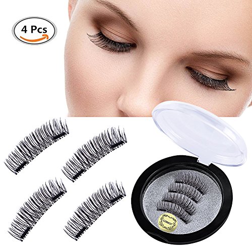 False Magnetic Eyelashes, Magnetic False Eye Lashes Magnet Eyelashes, 1 pair (4 piece) Ultra-thin 0.2mm Magnetic false eyelashes 3D Natural Reusable False Magnet Eyelashes Extension