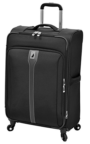 -. Feature : Lightweight woven material. Expand 2" for additional packing capacity. / Ergonomic grip telescoping handle and 360 degree multi-directional wheels. / Top, side and bottom carry handles. Skid guards and customer London Fog hardware. / Full London Fog signature lining. Interior shoe pockets and zippered mesh pocket on lid. Industrial self repairing nylon zippers. / 11x17x25