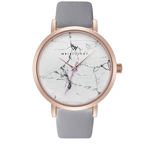 WRISTOLOGY OLIVIA WOMENS REAL MARBLE ROSE GOLD BOYFRIEND WATCH GRAY LEATHER BAND