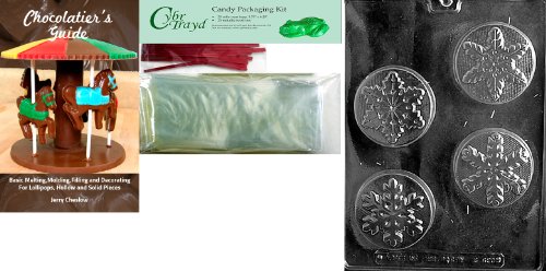 Cybrtrayd Snowflake Chocolate Mold with Chocolatier's Bundle of 25 Cello Bags, 25 Red Twist Ties and Chocolatier's Guide