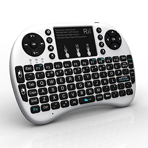 Features:92 keys, 2.4GHz wireless Keyboard with Touchpad. Touchpad DPI adjustable functions. Built-in high sensitive smart touchpad with 360-degree flip design. A new broken in classic Rii Mini i8+ new increased LED backlit function, you can us it in black with LED lighting QWERTY keyboard with multimedia control keys and PC gaming control keys. Auto sleep and auto wake mode. The Ergonomically handheld design is easy to carry and operate. Build-in removable rechargeable Li-ion battery that has longer standby time. Specification : Operating range: 15 meters(MAX), without signal disturbance and no direction limit. Frequency range: 2.403GHZ 2.480GHZOperational voltage: 3.3VCharge Voltage: 4.4V 5.25VModulation: GFSK Layout : US Channel: 78 channels TX Power: less than +5dBmTransmission rate: 1M bit/sec Frequency tolerance: +/-30ppmPower consumption: 55mA(on), 1mA(sleep)Battery Type: Built-in lithium-ion battery Notice : After 3 minutes without any operating will into sleep mode, press any key about 1s to wake up. Package Including:1 Wireless keyboard1 Wireless receiver1 Charging data cable1 User manual Note: If your device without USB 2.0 jack, you need buy one.