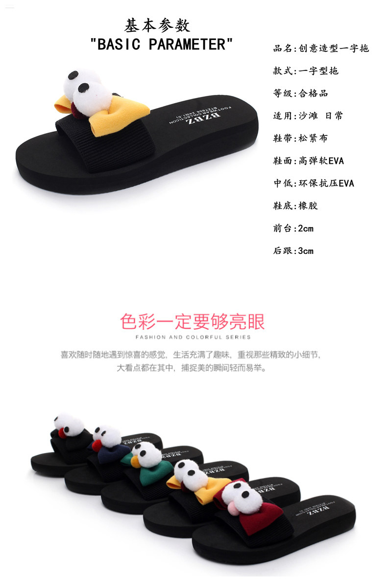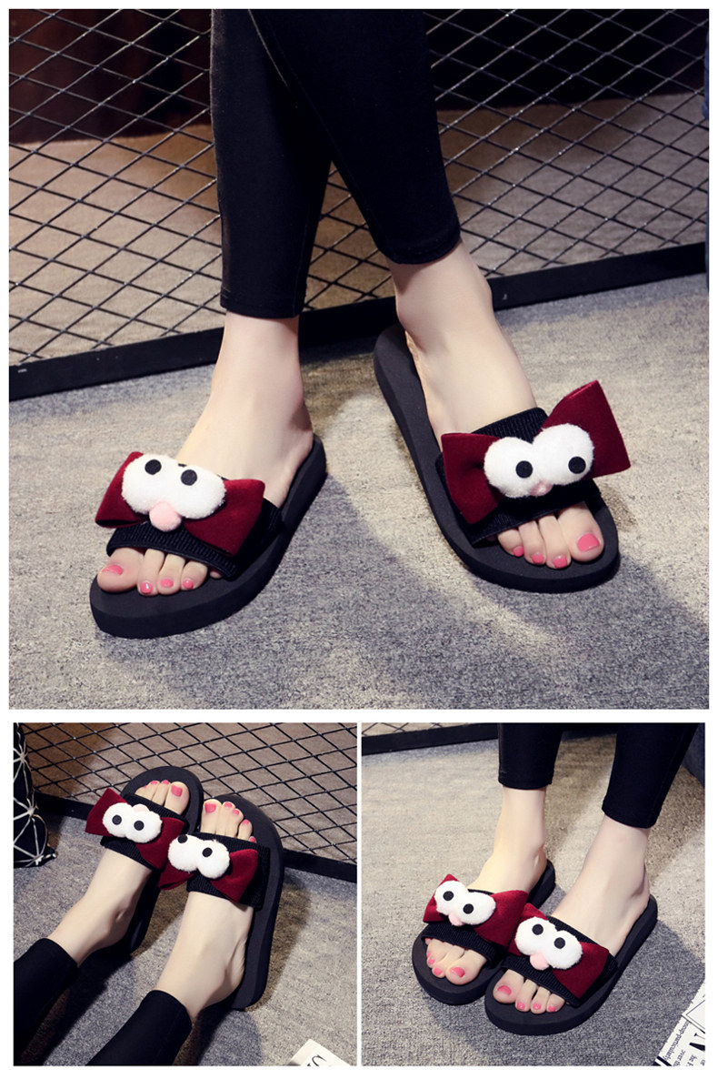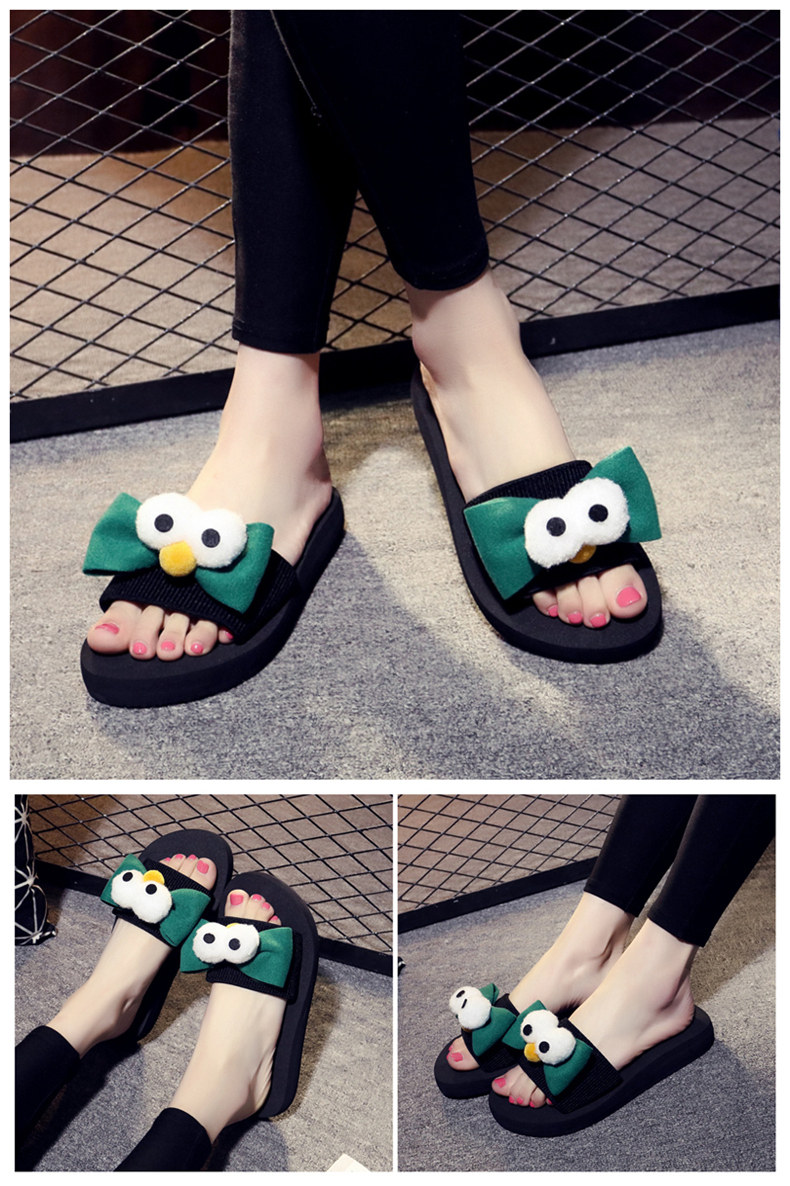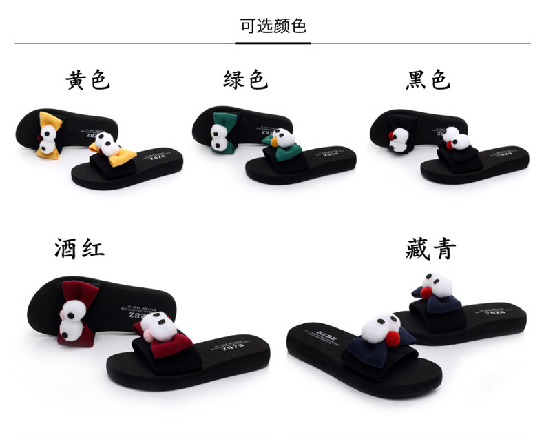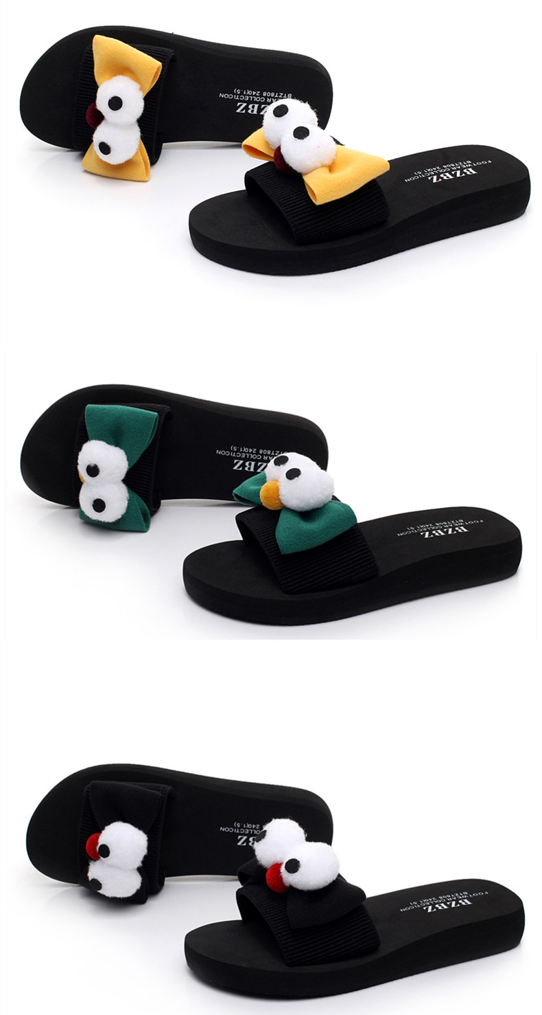 新款蝴蝶结厚底一字拖鞋女夏平底休闲沙滩鞋韩版外穿防滑凉拖