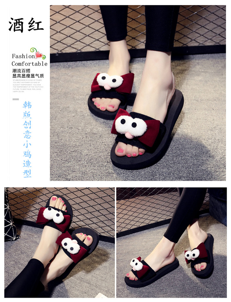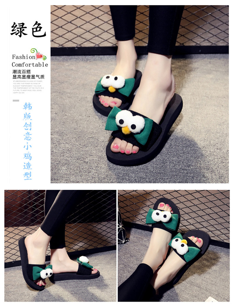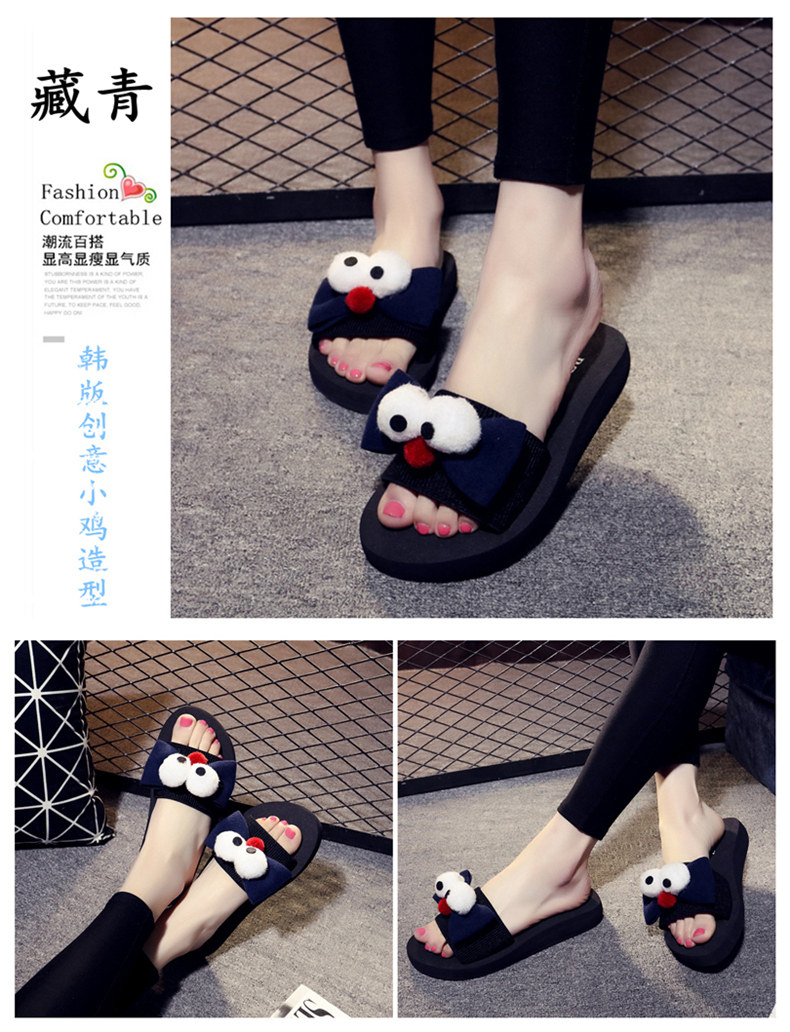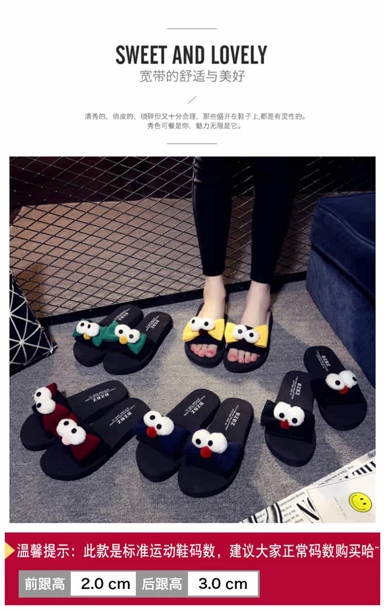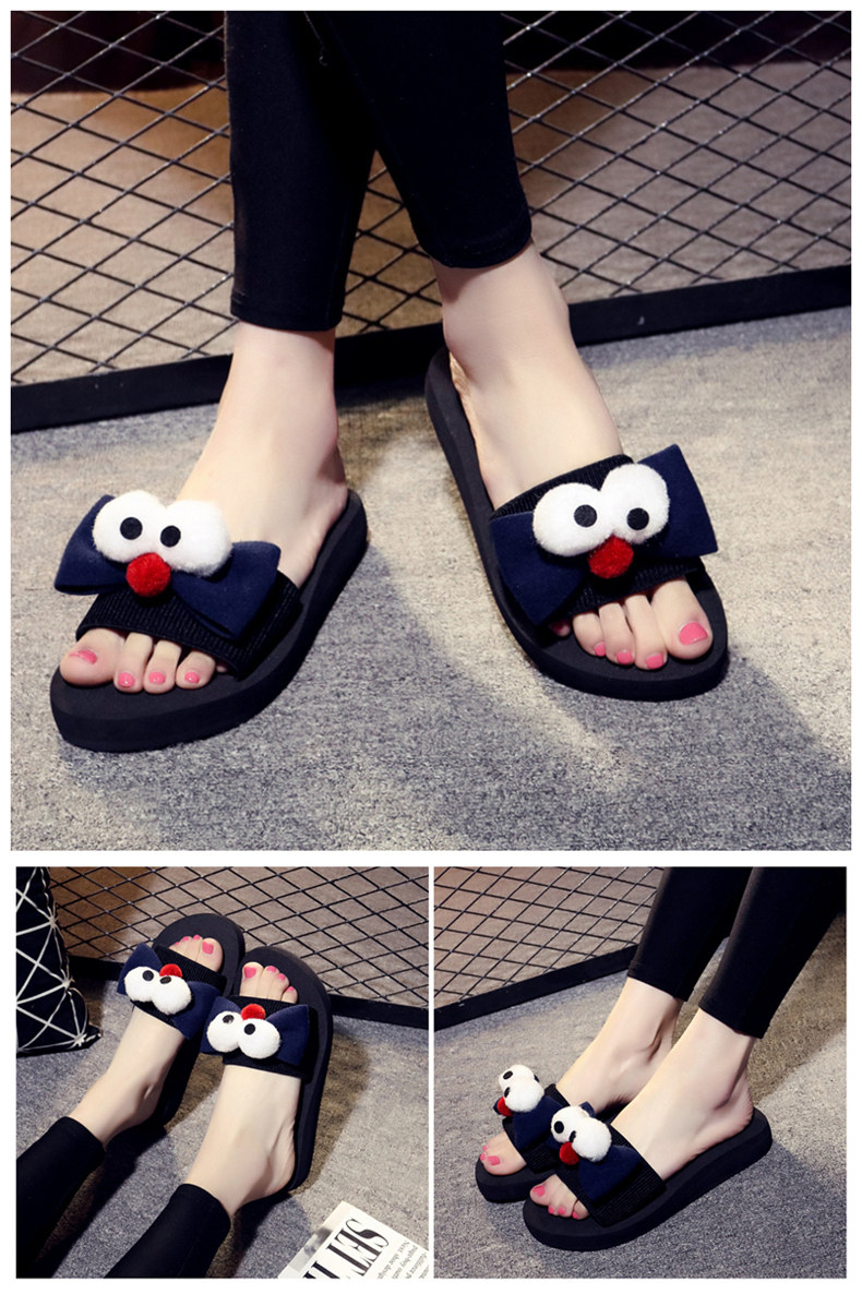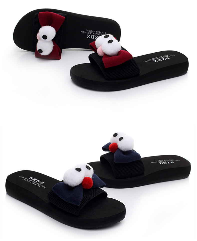 新款蝴蝶结厚底一字拖鞋女夏平底休闲沙滩鞋韩版外穿防滑凉拖