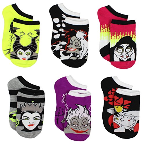 Join the dark side wearing these fun Disney Villains 6-Pack no show socks! Six pairs in each set provide variety and excitement with each pair featuring different colors and Disney Villains: Cruella De Vil, Maleficent, Ursula, The Evil Queen, and the Queen of Hearts! Each six-pack of no show socks are the perfect accessory to any outfit! The kids size 6-8 fits shoe size 10 M US Little Kid - 4 M US Big Kid. The adult size 9-11 fits adult's shoe sizes 4-10. These are the perfect socks for any Disney Villains fan! Choose your favorite or collect them all!Feature