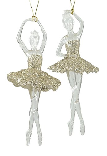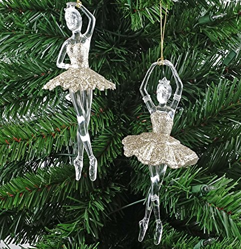 Glittery Ballerinas Dancing Hanging Christmas Ornaments - Set of 2
