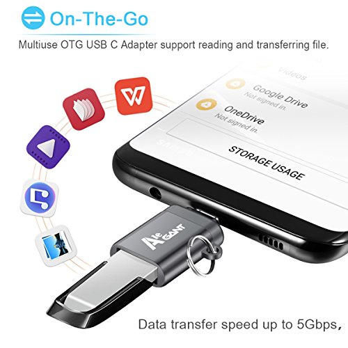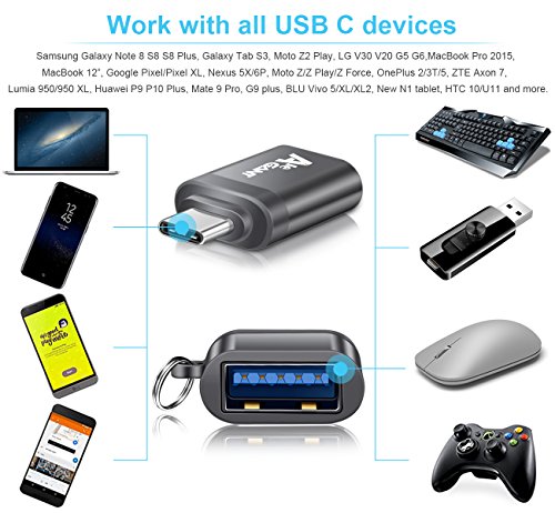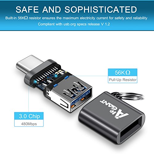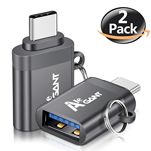 USB C Adapter, iAlegant USB C to USB A 3.0 OTG Adapter / C Type USB Converter with Keychain for Macbook Pro, Galaxy Note 8 S8 S8+, Google Pixel, Nexus 6P 5X, LG V20 G6, HTC 10 and More(2-Pack Grey)