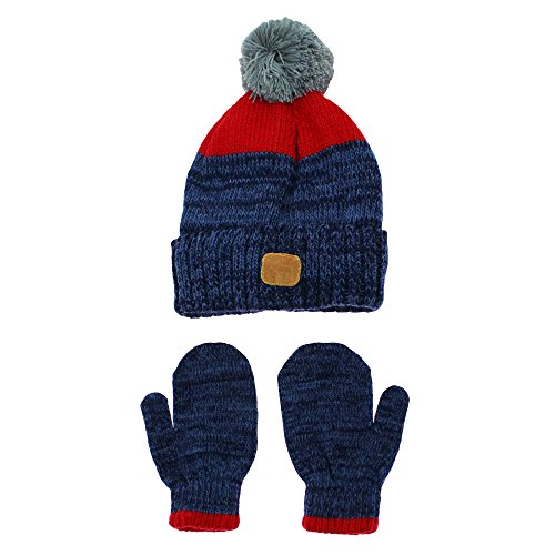 Product DescriptionHanes Toddler Boys Knit Color Block Warm Winter Hat and Mitten Set Blue 2T-4T0