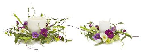 Melrose International Purple and White Floral Candle Rings, 10-Inch/14-Inch, Set of 2