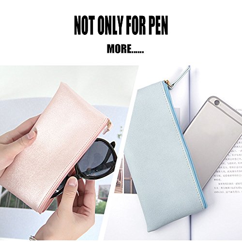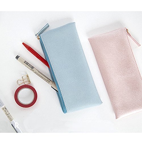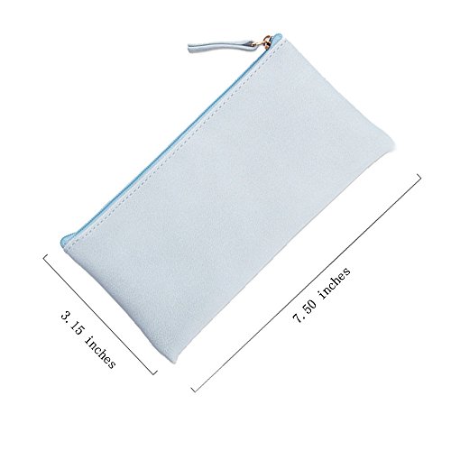 Leather Zippered Pencil Pouch Case Holder Cosmetics Bags (Blue)