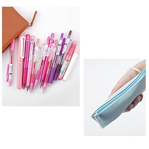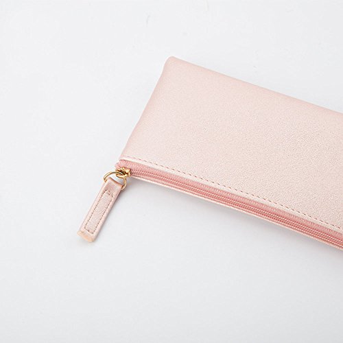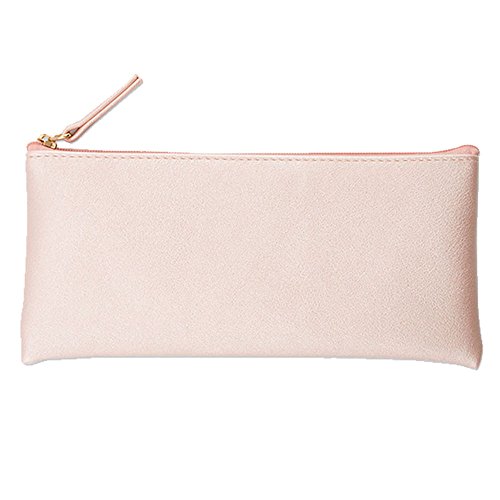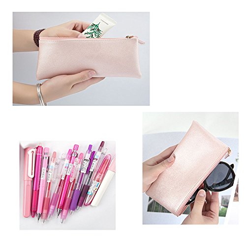 Leather Zippered Pencil Pouch Case Holder Cosmetics Bags (Pink)