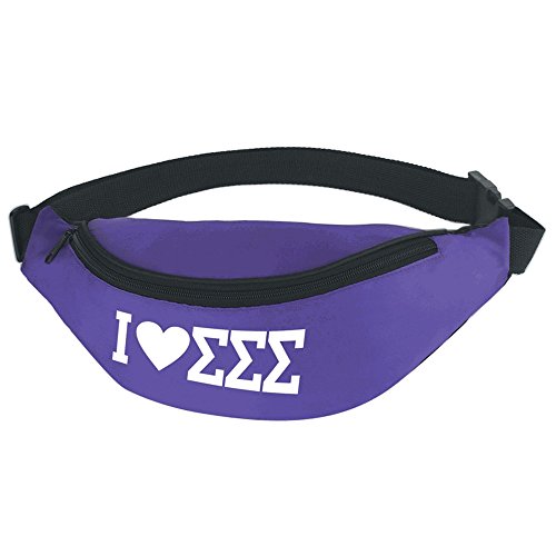 Product DescriptionSigma Sigma Sigma Large Zippered Front Pocket Sorority Polyester Fanny Pack. Measures 14GBD_QUOTE_GBD W x 5 1/2GBD_QUOTE_GBD H. Main Zippered Compartment Adjustable Waist Strap 44GBD_QUOTE_GBD Maximum Belt Size0