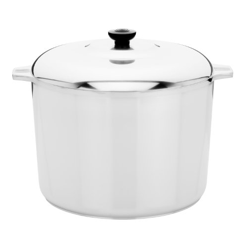 14-quart cast-aluminum stockpot with extra-thick base for even heat transfer