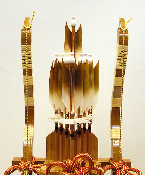 江戸時代に入ると破魔弓は飾り物・贈り物として盛んとなり、初正月飾りの代名詞として、いまも変わらず受け継がれ、男児の初正月には、雄々しく、力強く、健やかに育てとの願いをこめて破魔弓は飾られています。