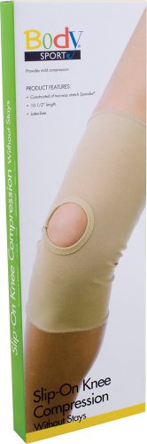 Studio : WBC Group, LLC Publisher : WBC Group, LLC Binding : Sports Product Description Body Sport Slip On Knee Compression Sleeve With Open Patella. Latex Free. High-quality product that provides ample support and stabilization. Useful for strength training and other health and wellness activities. This knee support system provides a high level of support and extra long compression. The material was hand-selected for therapeutic heat retention and soft tissue compression, while also for its long-lasting durability. This product's construction creates solid joint stabilization, additional ligament support, and a newly redesigned back allows for increased mobility and ease of motion. 0