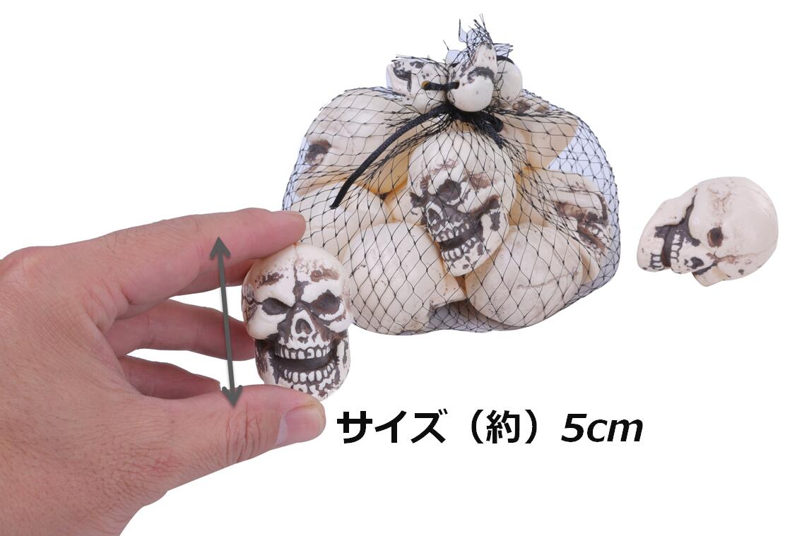 頭蓋骨 スカル ドクロ 置物 ネット入り 模型 ハロウィン 飾り ホラー ユニーク グッズ