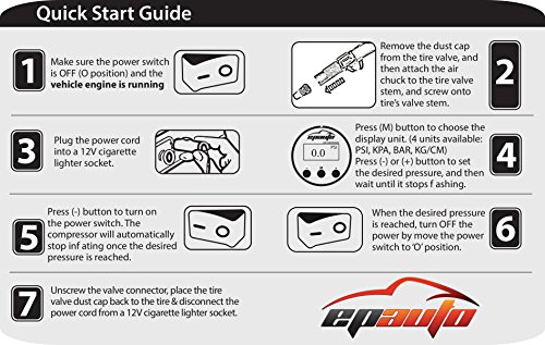 PREVENT OVER INFLATION: Auto shut off when reaching the desired tire pressure. Overheat protection shuts off automatically when overloading.