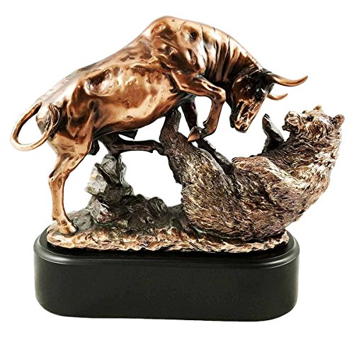 Wall Street Stock Market Charging Bull Trouncing Kodiak Bear With Base Bronze Electroplated Figurine Investors Gifts Money Managers