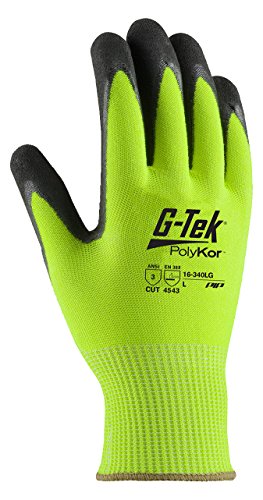 G-Tek CR 16-340LG/M Hi-Vis Seamless Knit HPPE/Glass Glove with Double-Dipped Nitrile Coated Micro-Surface Grip on Palm and Fingers