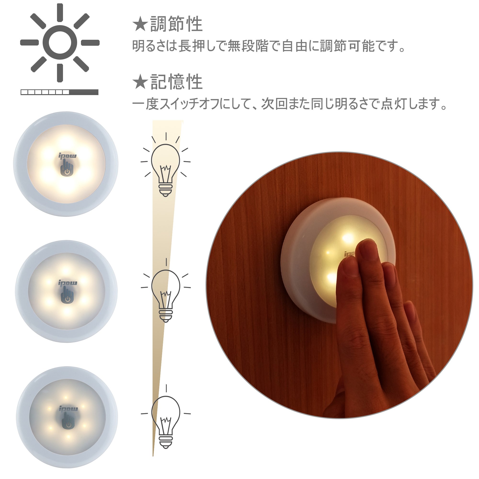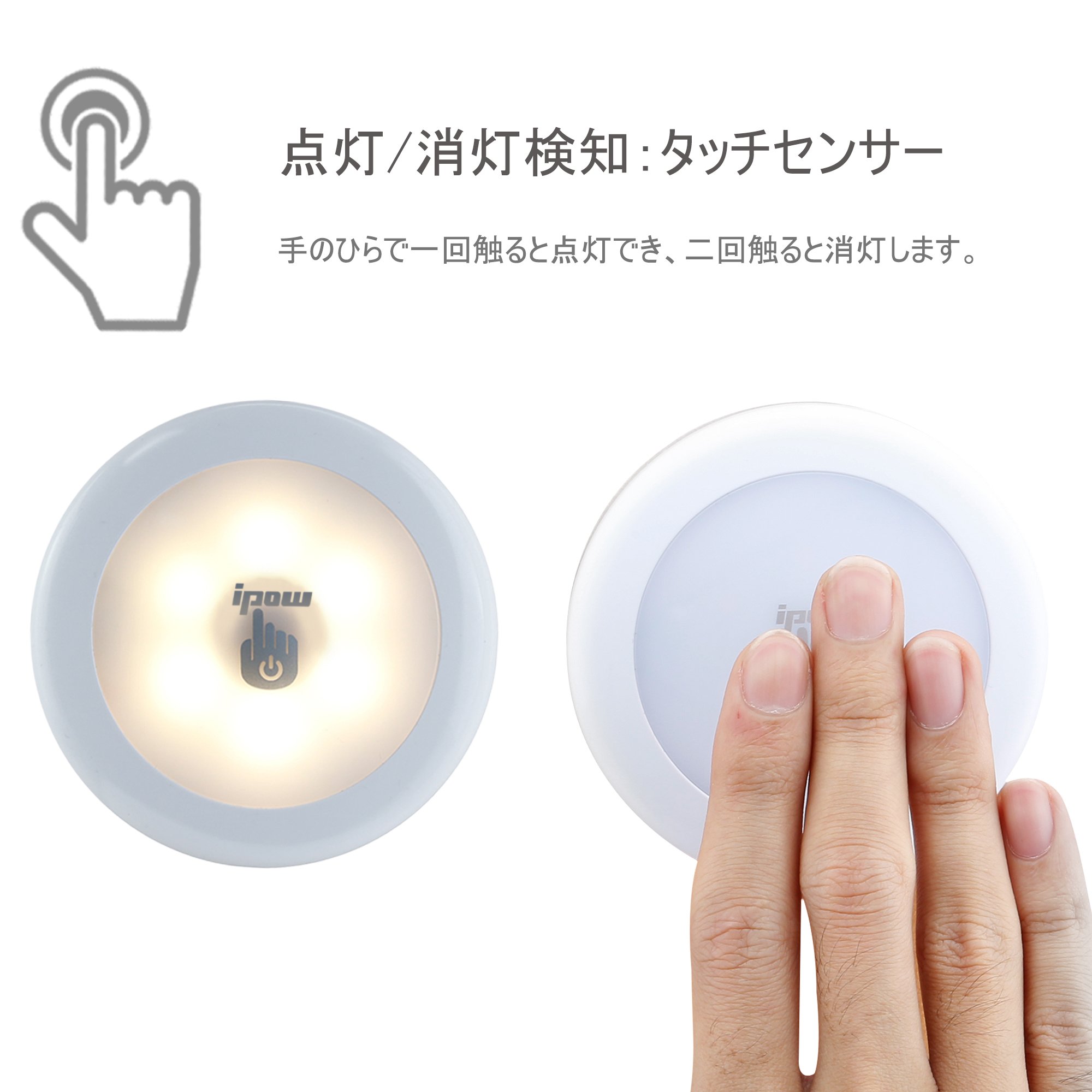 ipow's touch sensor light can be lit when touching once with the palm when brightness is required and turned off when touching twice when brightness is necessary.