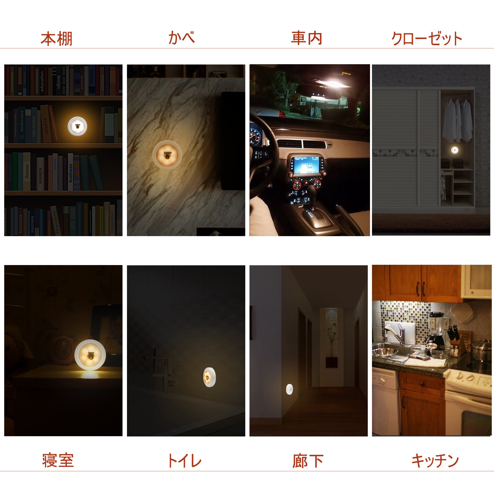 You can use it in a dark place where there are no luminaires in the car, outdoors, etc., as well as in a closet, a bookshelf, a cupboard, a bedside, a drawer, a closet, a cabinet, an entrance, a bin, a kitchen and a storeroom.