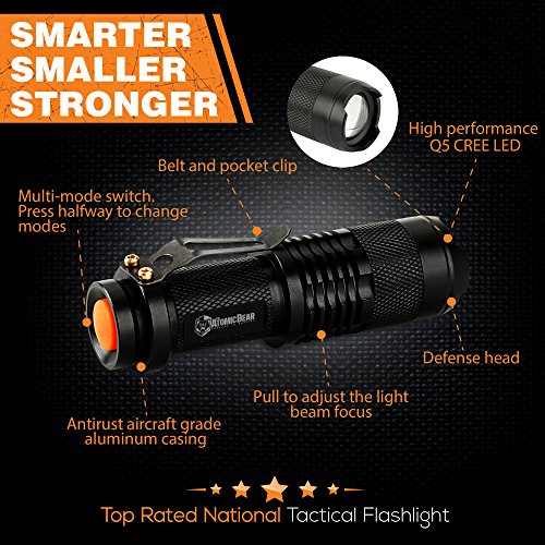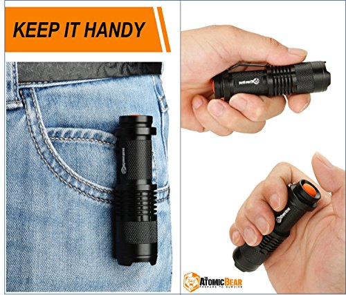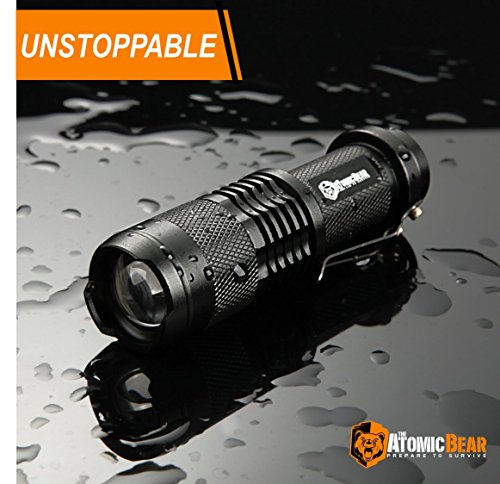 - ► LOADS OF POWER IN A SMALL FORMAT - Stronger light beam, sturdier, smaller and lighter than competition & unique Atomic Bear life time warranty. Zoomable lense, 3 lighting modes, sturdy.