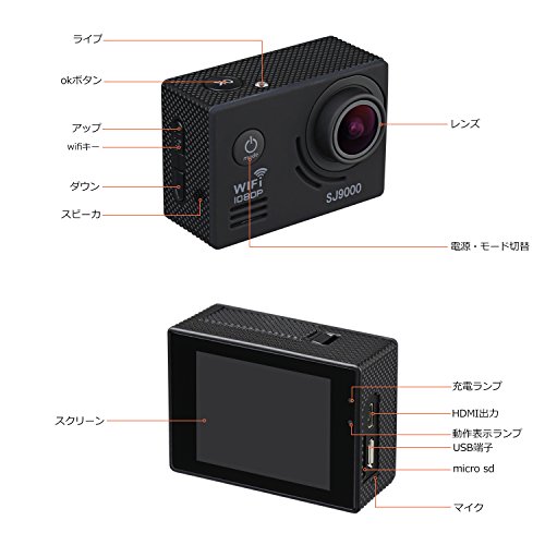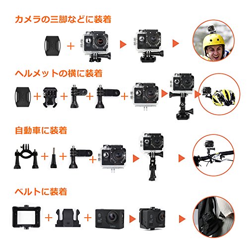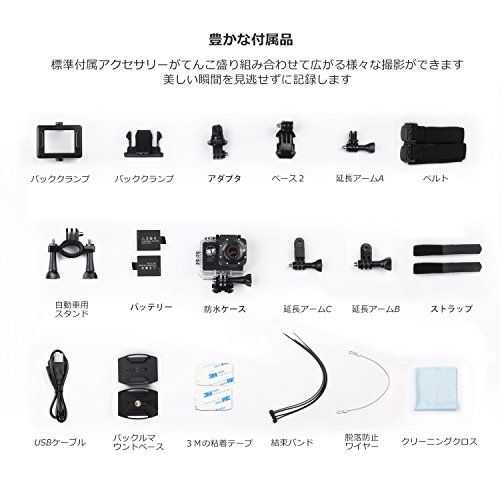 【思いやりの配置】必要なアクセサリーも付属されので野外活動、エクストリームスポーツ、水上運動に適します。また、ホームセキュリティ、ドライブレコーダーとしても適用されます。(日本語説明書も付き)
