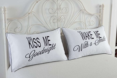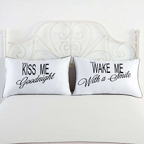 DS DUVET STAR 2pcs Pillow Cases Pillowcases Letters Printed Bedding Wedding Anniversary Gift (30"x19"x0.8", Kiss me & wake me)