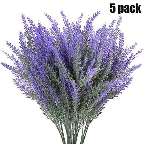 Artificial Flowers Lavender Bouquet 5 Pcs Fake Flocked Plant Purple Fake Flower Decor Brighten Home Party Wedding Centerpieces Arrangements Christmas Decoration- by Yblntek