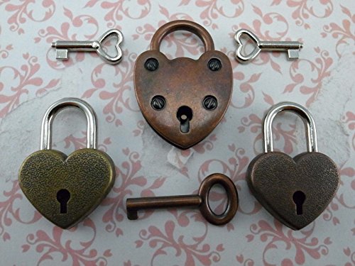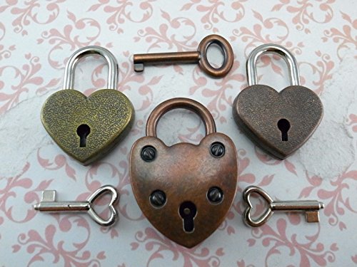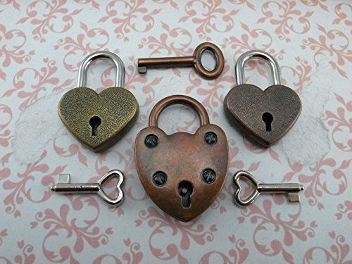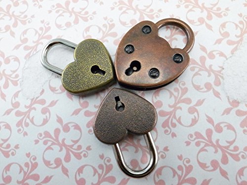 Vintage Antique Style Padlock Key Lock Heart Shaped (Assorted color) Lot of 3