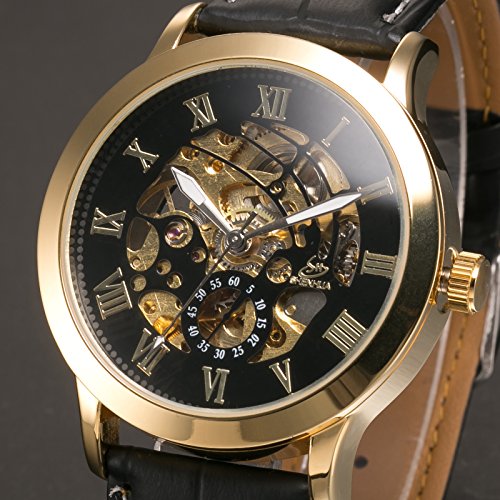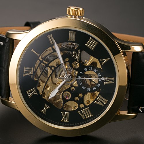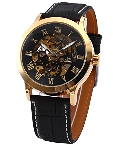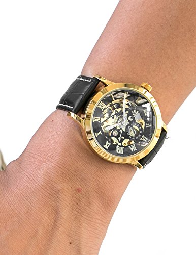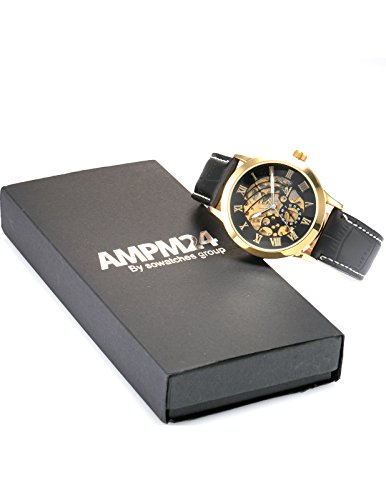 -. Title : AMPM24 クラシック メンズ 自動機械式 ビジネス ウォッチ ブラック レザー ストラップ スケルトン 腕時計 PMW078