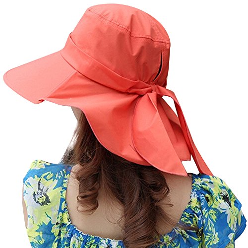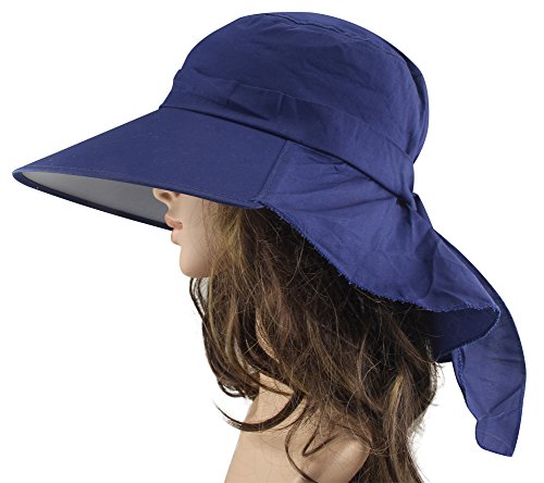 MINAKOLIFE Women Summer Flap Cover Cap Cotton UPF 50 Sun Shade Hat with Neck Cord