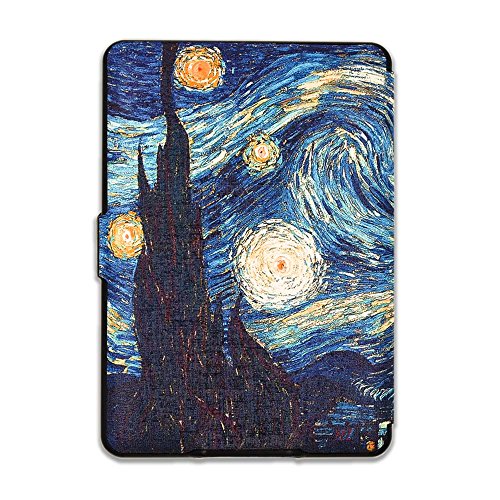 Kandouren Kindle Voyage Case - Van gogh Starry sky Unique Art Skin,Lighted Slim Leather Cover with Smartshell Autoweek function,blue color