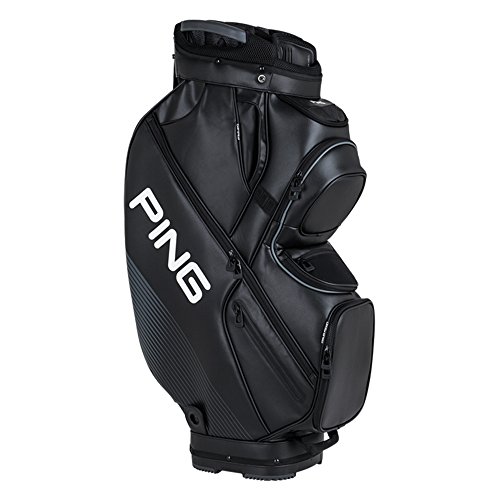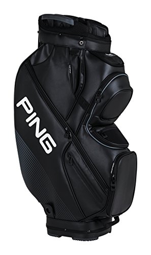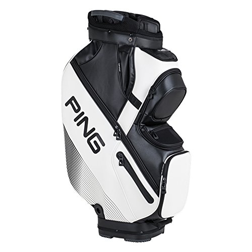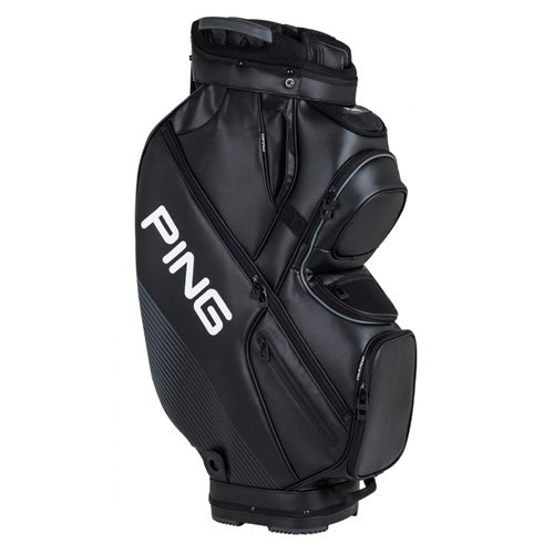 Convenient new stowaway shoe pouches add to the appeal and versatility of the fully optimized PING DLX bag. Among the 14 pockets are twin apparel pockets, and a cart-strap pass-thru channel keeps pockets and belongings accessible. Generous storage, a durable polyurethane exterior, spacious club wells, and robust construction give the PING DLX bag a tour-inspired look, feel and usability. 15-way mesh-covered top with "soft-touch" lift handlesRubberized putter well fits oversize grips2 deployable shoe pouchesCart-strap channel keeps pockets accessible14 pockets (2 large apparel)Range-finder pocketVelour-lined valuables pocketInsulated beverage pocketDurable polyurethane materialTrunk handleRubberized, cross-design bottom fits securely on cartsZip-off, customizable cooler-pocket panel 0 |
