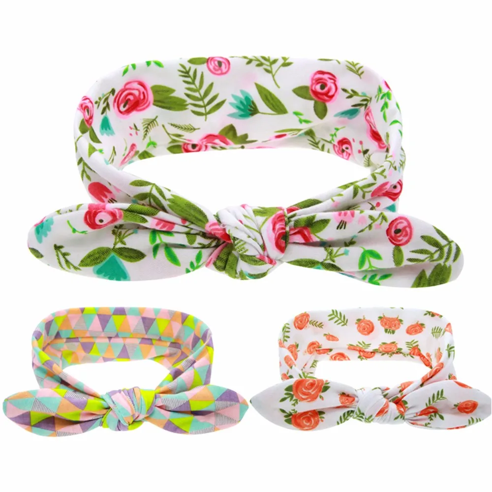 1 PC Cute Baby Kids Girl Print Flower Butterfly Dot Star Rabbit Ears Hairband Turban Bow Knot Headband Hair Band Accessories